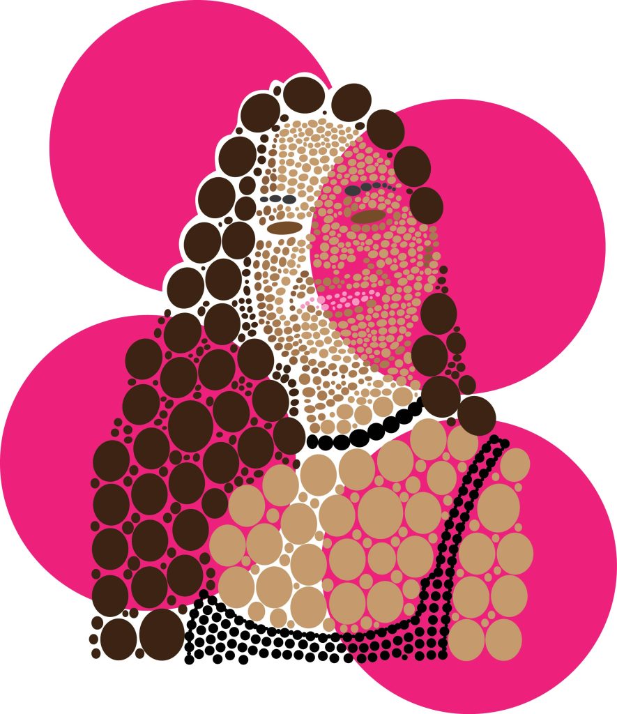I also used big circles for the background to continue on with the circle theme of the design. The choice of hot pink for the background colour of the circles was to make the whole design pop more, with the bold colour from behind making the light colours of the skin come out more in the final design.