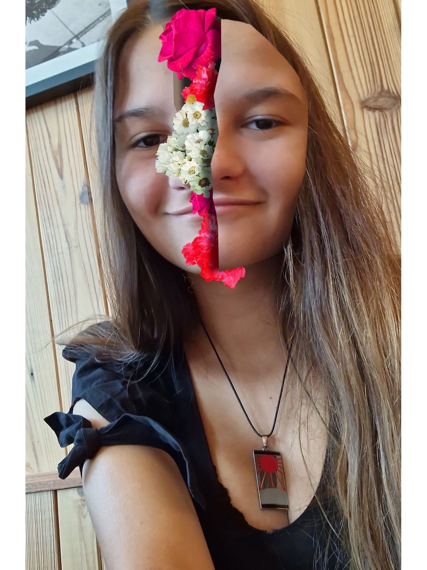 When designing my first photoshop portray I wanted to incorporate my love for flowers. Using clip masks, shadows, layer stacking and adjustments to create an illusion that the head opens in the middle and flowers come out of it. This design is meant to symbolise my love for flowers and especially roses and daisies which is why they are the two main flowers the viewers see. Especially the daisies since they are the only white ones which creates a focal point.