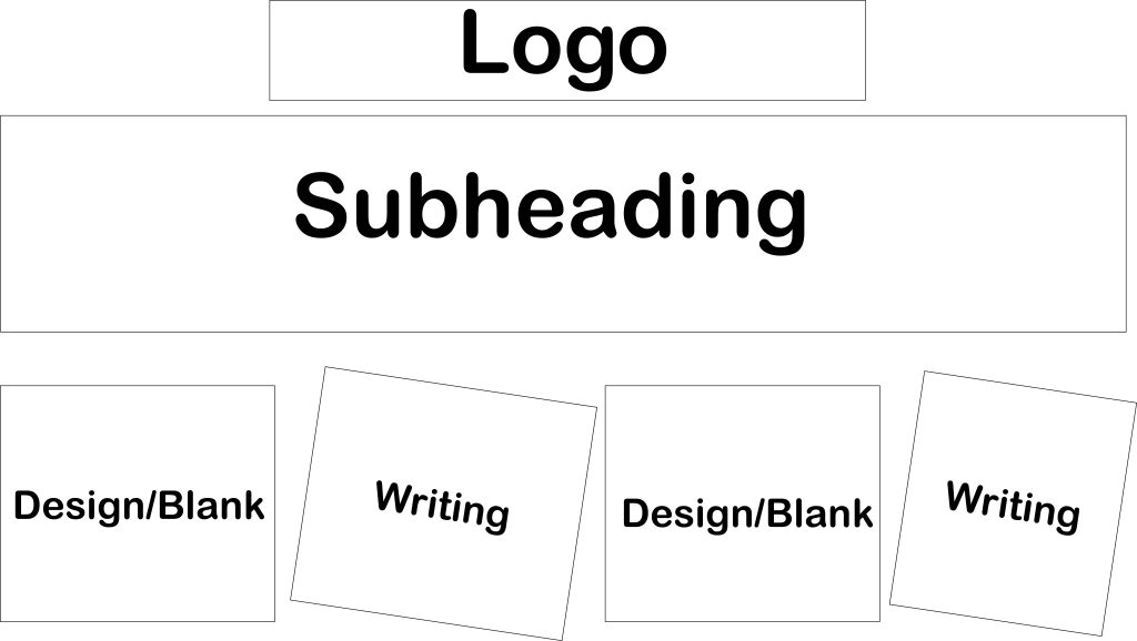 Before starting my editorial information pages I had to create a master composition grid that will be used as a template for the pages. When creating the grid I wanted to make sure the logo is always at the top, to make it easily noticeable. The focal point is the subheading that takes the top half of the page, that will make the viewers immediately know what that specific page is about. The bottom half of the page is divided with two pieces of text that corresponds with the subheading and two pieces of design to visually interpret the subheading.