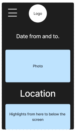 When designing the app development, the first step was to place where the logo will go when the users open the app. At the end the logo was decided to be in the centre of the app to be the focal point to immediately grabs the users attention when they open the app. Next to the logo, at the top left side is the menu that will go down to show the different menus for things such as: tickets, fun, information and guests. That way the users can go on the desired menu.