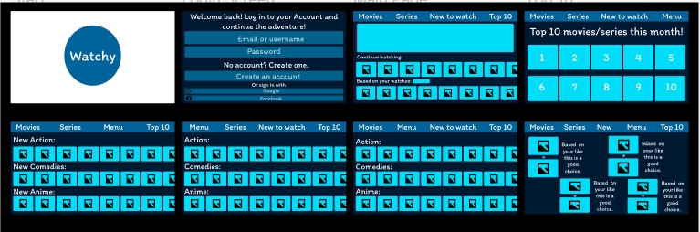 For the website version of the app (which is the biggest version) once again the text and images have been enlarged to fit to the size better. However, not only that but the continue to watch, based on watches, movies and series all have more recommendations added into them for the users. The top 10 series/movies are also moved in position once again to have all 10 in the same page. The main difference with the website from the app and tablet is the header, in the app and tablet the sections are into separate individual boxes the users can press whereas, in the website version there is a line at the top that has all of the sections that the user can click all through out the pages. This gives the prototype of the website a more clean and finished look.