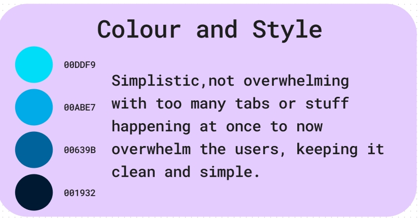 When thinking of the colour and style of the app I wanted to go for a more simple approach for the style so that it doesn’t overwhelm the users with too many taps. For the colours I have decided to go with the primary colour blue and use different hues and shades of it so that there aren’t too many colours that will make it look too busy.