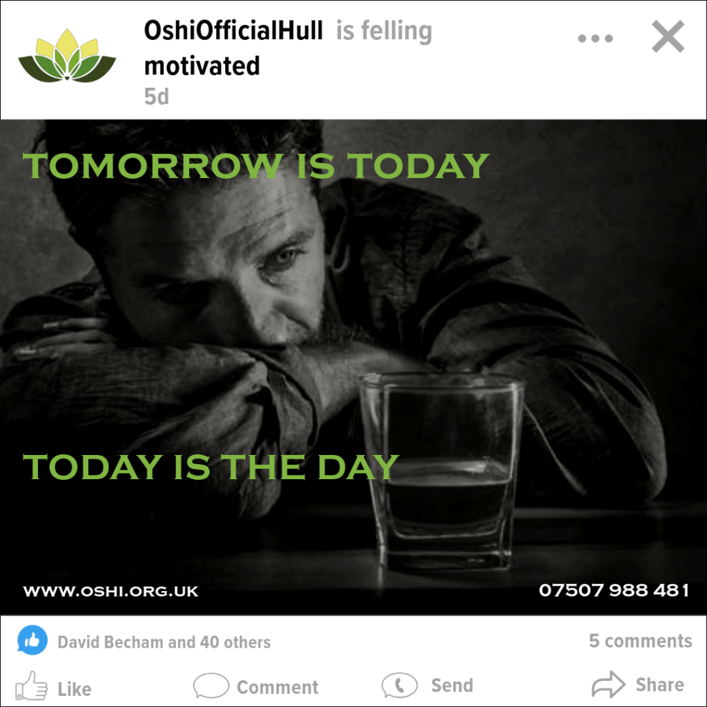 After finishing with the social media posts, the next step was to create an e-commerce page that will showcase what a selling website will look like for OSHI, with the fact that this organization is a non-profit one in mind there is a disclaimer at the bottom of the page that informs users that any purchased made the money used will be used for helping people overcome addiction rather than OSHI benefiting like how a profit focused organization would. The e-commerce page was made once again using Adobe Express, using visual elements and typography to create the reviews, the sizes, and once again following the brand colours the ‘buy now’ and ‘add to cart’ buttons. For the mock-up an online mock-up of a hanging t-shirt was used (4) and opened in Adobe Photoshop where the re-designed OSHI logo was imported and positioned on the left side of shirt.