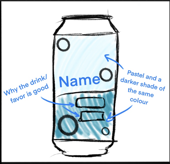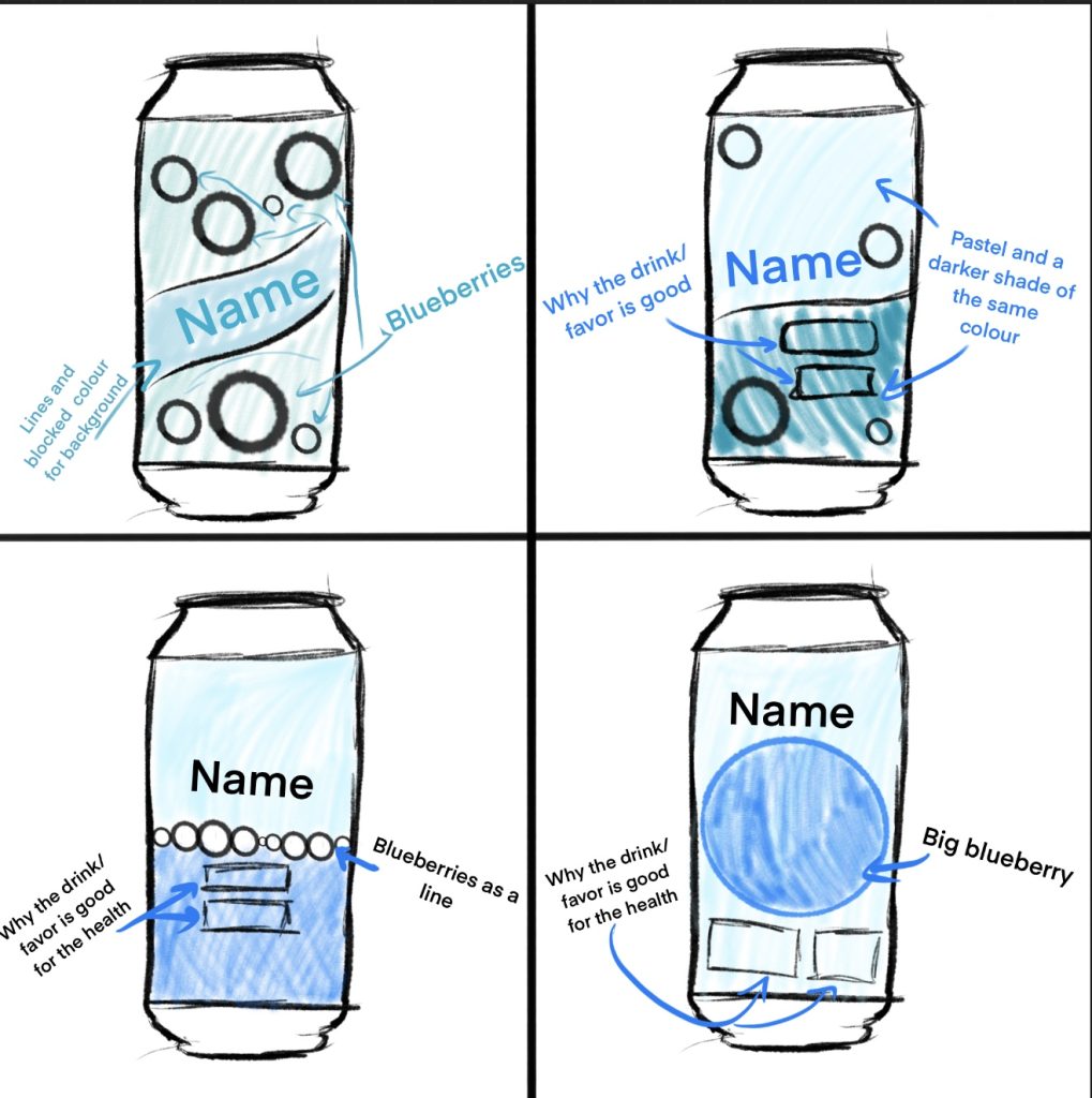 With the help of these pieces of research done I can start thinking of rough ideas for the conceptual design of the can label. These are some sketches that were done with the elderly’s preferences for colours and flavours in mind.