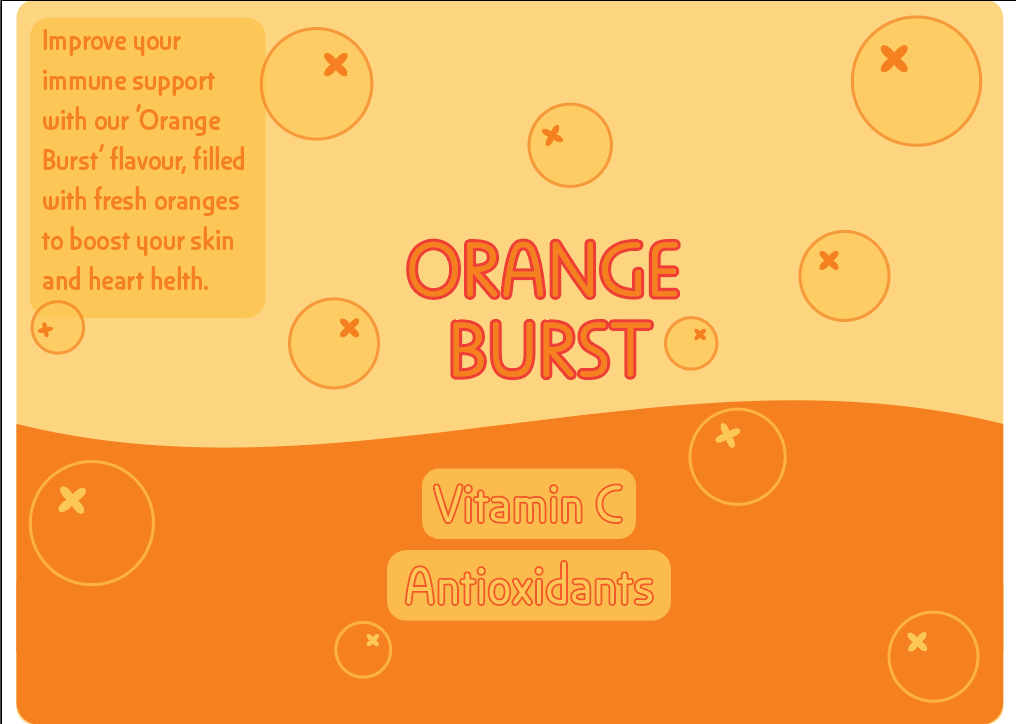 For the name of the brand I have chosen to call it ‘BURST’ and have the different flavours of the drink be called ‘[FLAVOUR] BURST’ to symbolise the burst of energy and health factors that the drink will bring using high quality ingredients.