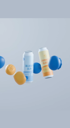 After doing the animation, when thinking about using Tufte’s narrative over space and time, I went with a different approach. Instead of using text of the ingredients like I wanted to in my previous post, I used the fruit inside the flavors to convey a message. I did that by animating the cans coming into view alongside their respective fruit flavor. So, for the blueberry one, the blueberries came up on that can’s side whereas the oranges did on the orange can flavor side. This uses the time in the scene to convey the message of what the cans flavours are using different elements than only the words on the labels but also show visually.