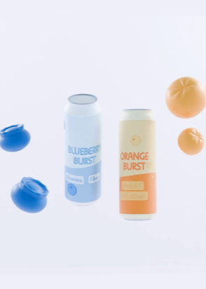 (Showing how the fruits come up together with the cans on their respective sides to bring the narrative of which flavour belongs to which can more clearly.)