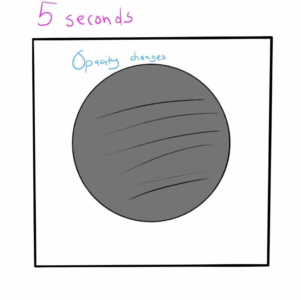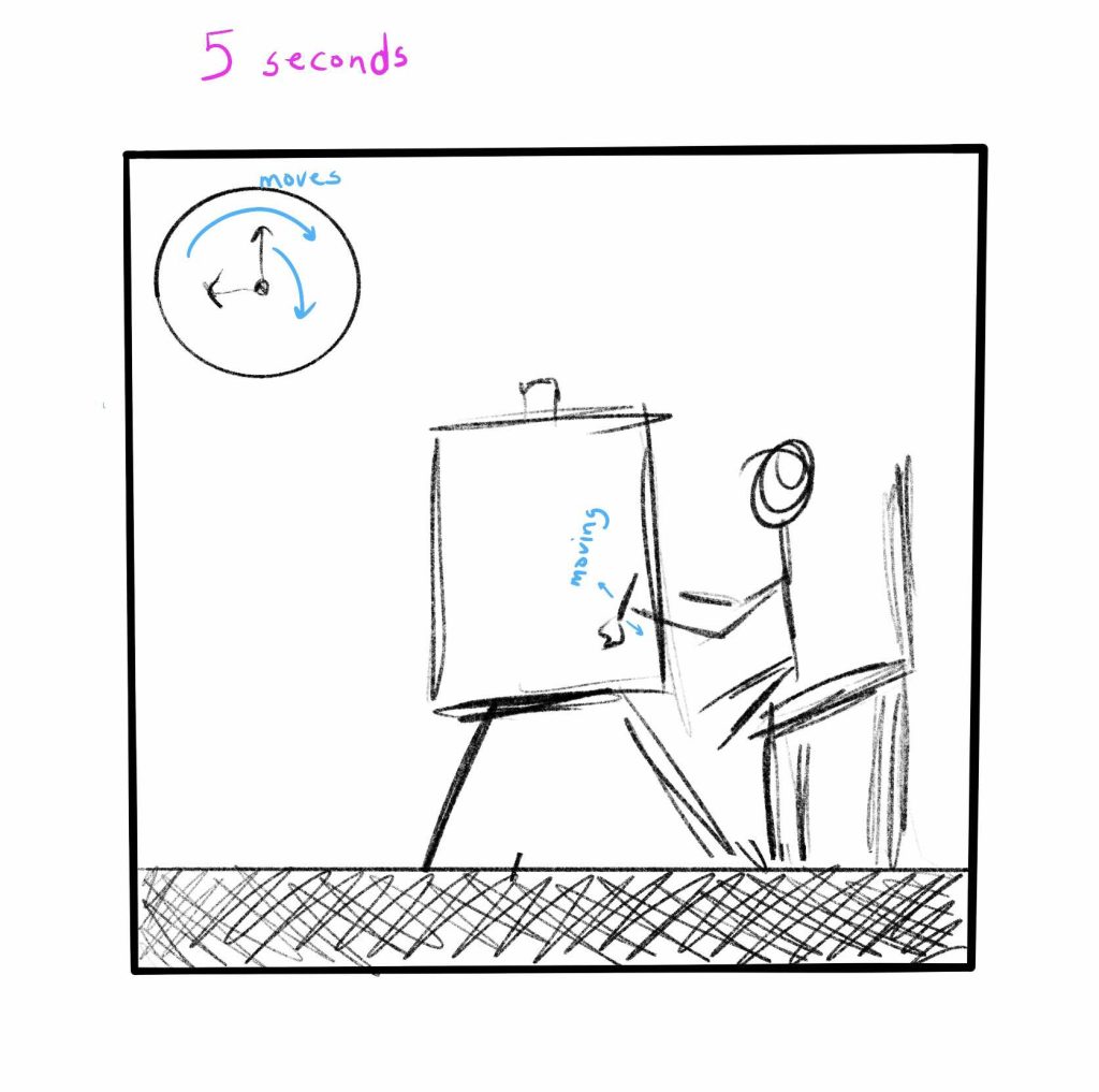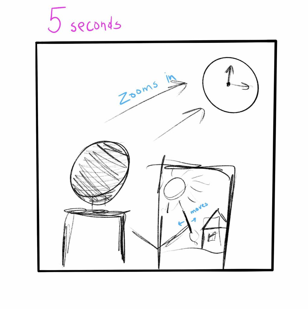 When doing the storyboard there needed to be a transition from one thing to another, this is where the scene of the clock comes in, the third scene in the storyboard. For this one the Animate camera will be used to zoom into the clock (the clock used to showcase how much time human artists spend on pieces of art) and from the black dot it will go into the black circle that will have a fact or statistic in it.
