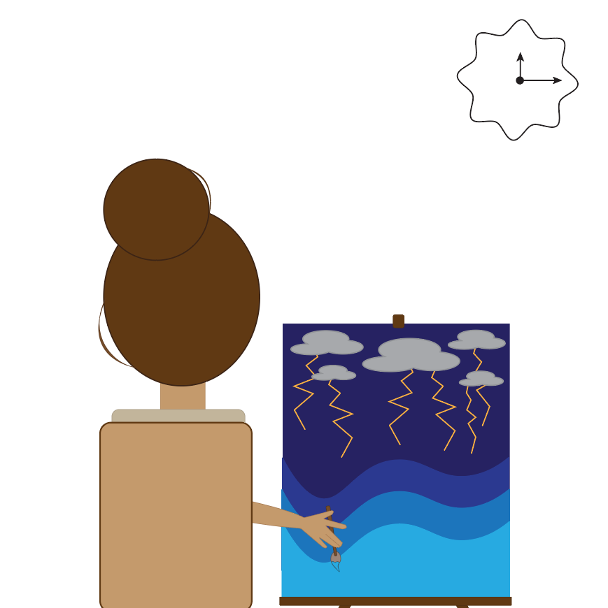 The second theory that Tufte has talked about that I will encorporate into the animation is that of small multiples. This is when changes happen to a scene, small changes, to create a sequence that is easy to follow like in the movies. For this the best example is the third scene, where the position of the girl is changed and in the animation the brush that the girl paints the canvas with is animated to move from left to right. This creates a smooth movement that is a small change that is easy to follow for the viewers.