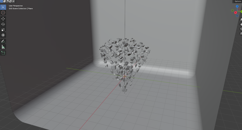 For the object itself once again it was a diamond, due to the fact it seems fitting for a diamond to shatter into pieces. It’s also a simple shape that doesn’t take long to model and render which allows me to focus on experimenting with the cell fracture part of animation.