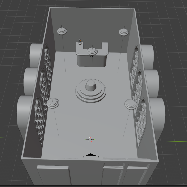 For the first scene to make sure that the viewers’ attention is on the main globe rather than looking away, I made the light flicker in the middle right above the stand, as well as the lamp above the stand to sway left to right, this is so that the viewers’ attention is solely focused on the main globe since that is where the transition will take place. The reason that viewers can move the camera freely is also why I created the shop scene and the house scene to be closed off so that the viewers can still turn and look around but only to a certain extend. Moreover, the shop scene is fairy plain to not only create a smoother experience but to also make sure the viewers don’t have many distractions and the distraction they could have like the case and desk are placed behind the main globe so that the camera is still facing that way. The final way that makes sure that viewers are focused on the main globe is the material difference, since the shop scene is in a specific colour scheme and the house inside the globe is in a lot more bright colours the sharp contrast that it creates inside the shop also helps grab the viewers’ attention to the stand.