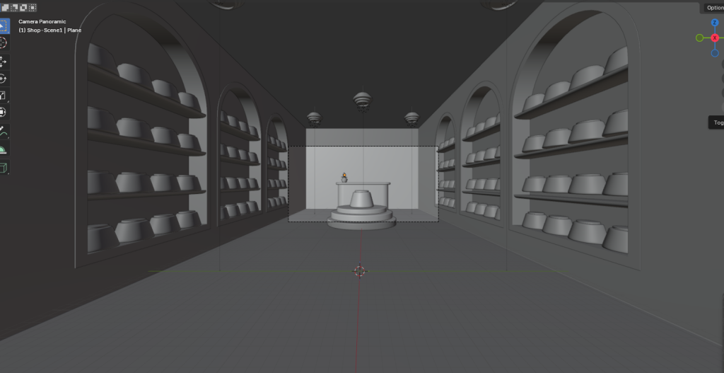 For this production piece I wanted to use Blender and the 360-camera view that I learned to create 300 frames, roughly a 10-second-long animation that transitions from one scene to another. The idea that sounded the most promising that will allow me to not only showcase my current Blender skills but also improve on them further was the following. The first scene will be a shop specifically selling globes, with different sceneries inside them, to continue with that idea and to make sure the two scenes are connected the second scene will be inside one of the globes. This is to not only connect the two scenes but to also create a storytelling experience for the viewers. With this being a 360 view I had to make sure that everything is thought of since the viewers have the freedom to move the camera view whichever way they want, so making sure that there is something in every direction is critical and it is also why I choose the scenes to be enclosed, the first in a closed off shop and the second in a globe.
