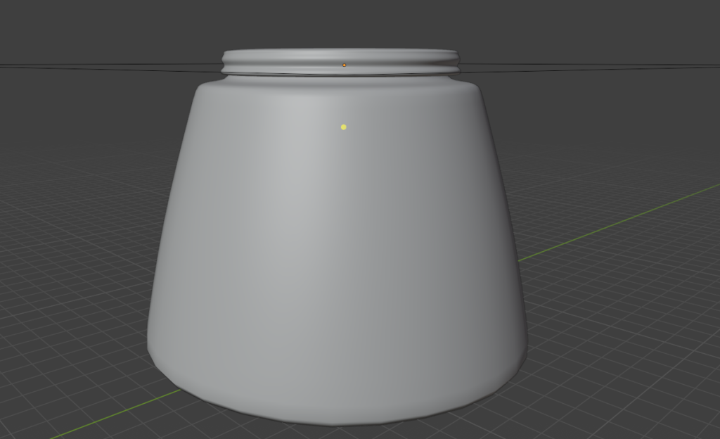 (Screenshots of the modelled shop scene in blender, top view, stand, jar with the house inside and the camera view inside the shop.)