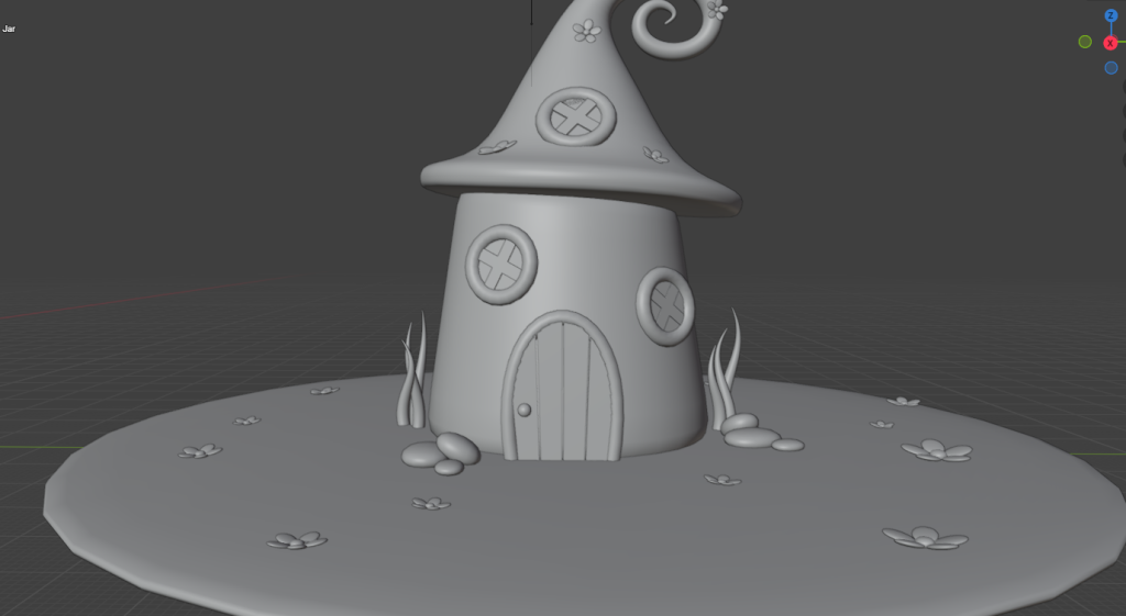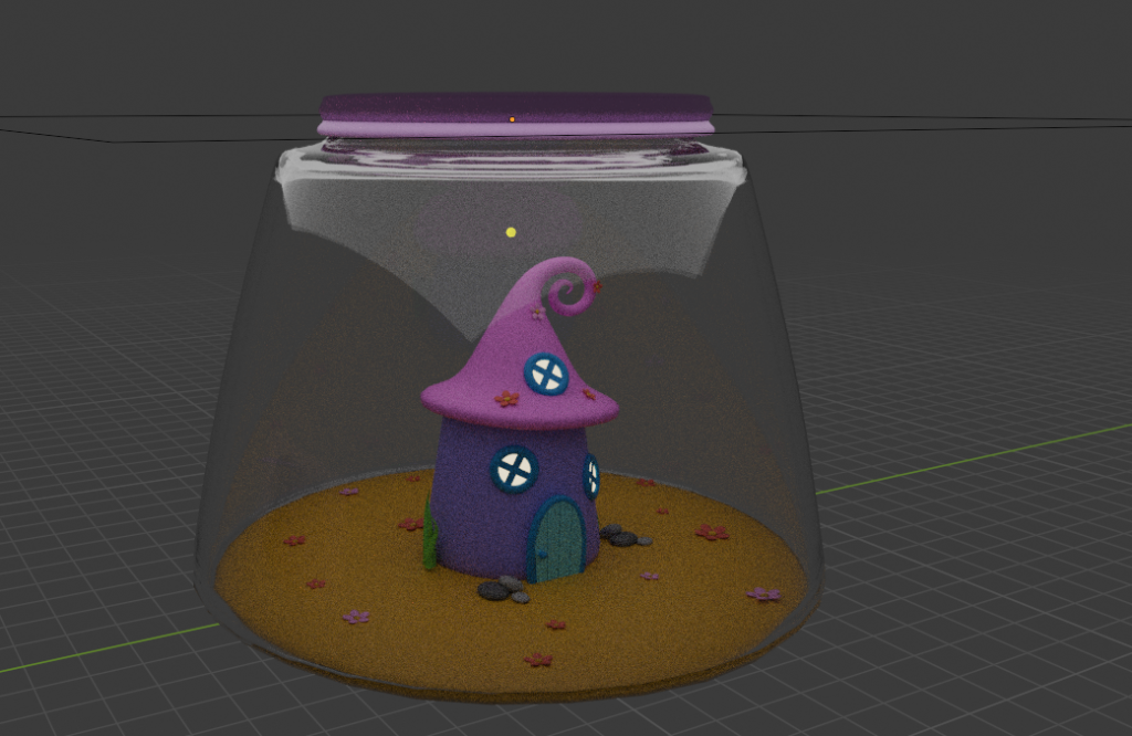 For the second scene inside the globe the modelling was much simpler since it didn’t require many elements other than the house and glass globe that it’s in. The colour pallet used for scene is a lot more random and brighter since it’s supposed to be a fantasy unrealistic kind of feeling and the unnatural colours help with creating that feeling in the viewers.